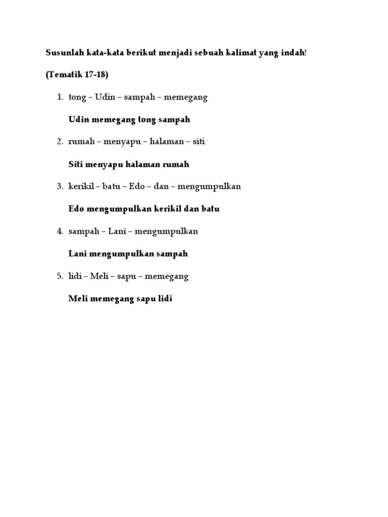 Dalam kalimat, kata leksikal berkedudukan sebagai subjek. Goda seorang gadis dengan menggunakan plastik sampah. Gabungkan kedua kalimat ini dengan kata hubung dan! Menggunakan kata perintah, contohnya yaitu ambilkan, jangan, tolong. Urutkan kata kata berikut menjadi kalimat.